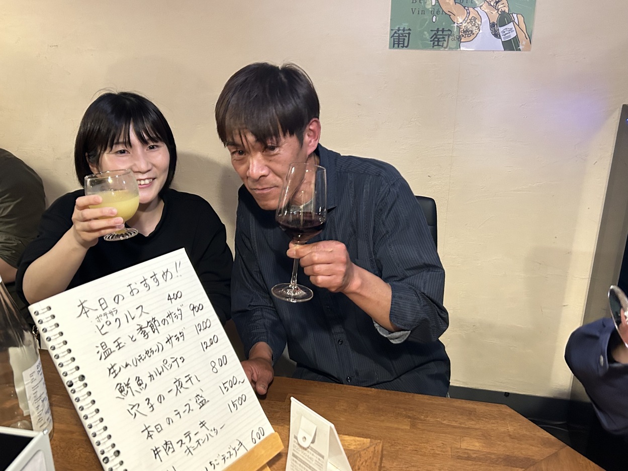 新人歓迎会 2024年05月08日 太田硝子店は長い10日間のGWも終わり、昨日から営業しております。 GW前の4/26は新人さんの歓迎会を行いました(^^♪ 久しぶりの楽しい会にたくさん笑いましたよ~!! 二次会はいつもお世話になってる宍道湖ワインさんへ… お洒落なワインが揃ってました♡ 実は店長の太田さんは社長と親戚なのです!よく見ると似てませんか?? そして超大型新人(!?)の2人は仲良く三次会へ…(笑) 新生太田硝子店もよろしくお願い致します(*^^*)